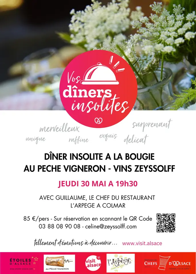 On May 30 at 19:30 at the Maison ZEYSSOLFF, immerse yourself in the experience of unusual dinners in collaboration with Diners Insolites d’Alsace – Alsace Destination Tourisme.